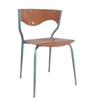 Silla con estructura de acero lacado tuular lacado en negro y asiento y respaldo en madera barnizada color cerezo oscuro.